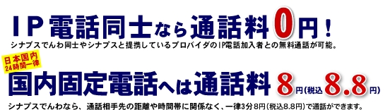 シナプスで以下のメニューをご利用中の方は月額基本料280円(税込308円)でシナプスでんわ同士及び提携プロバイダとの通がご利用になれます。