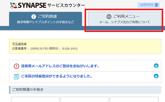 2. 画面上部にある「ご利用メニュー」をクリックします