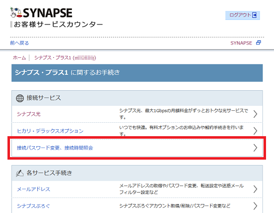 4. 「接続パスワード変更、接続時間照会」をクリックします